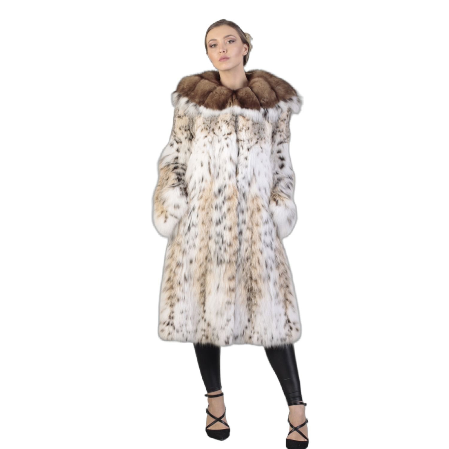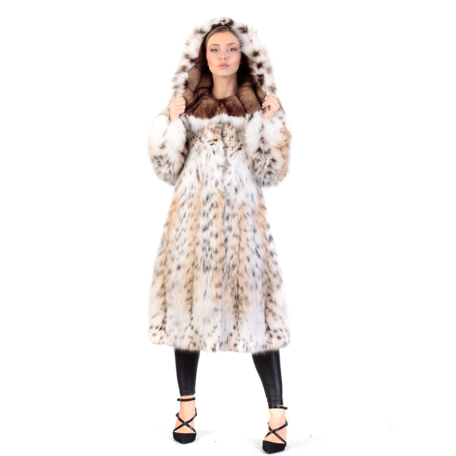 Womens Bobcat Lynx and Sable Fur Hooded Coat