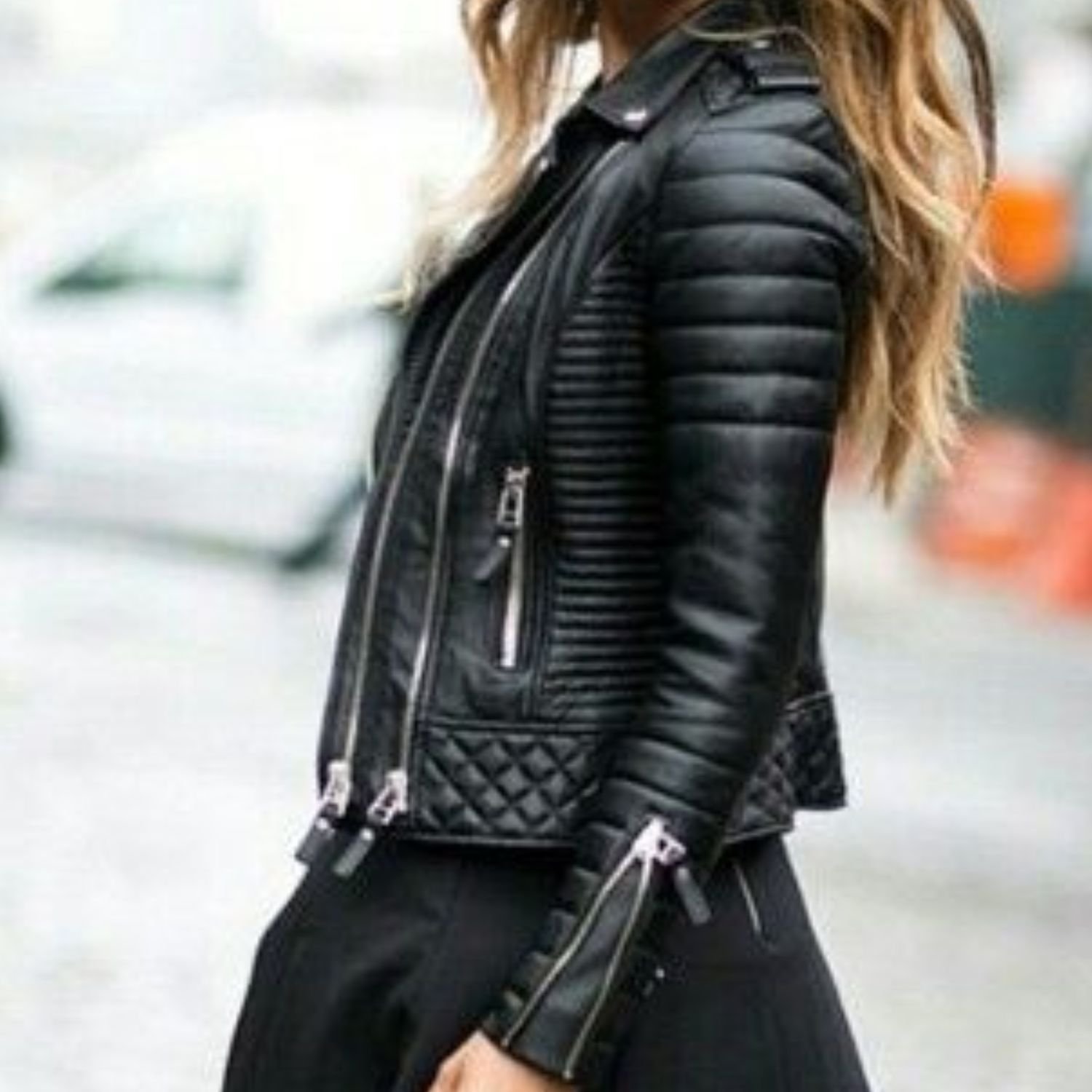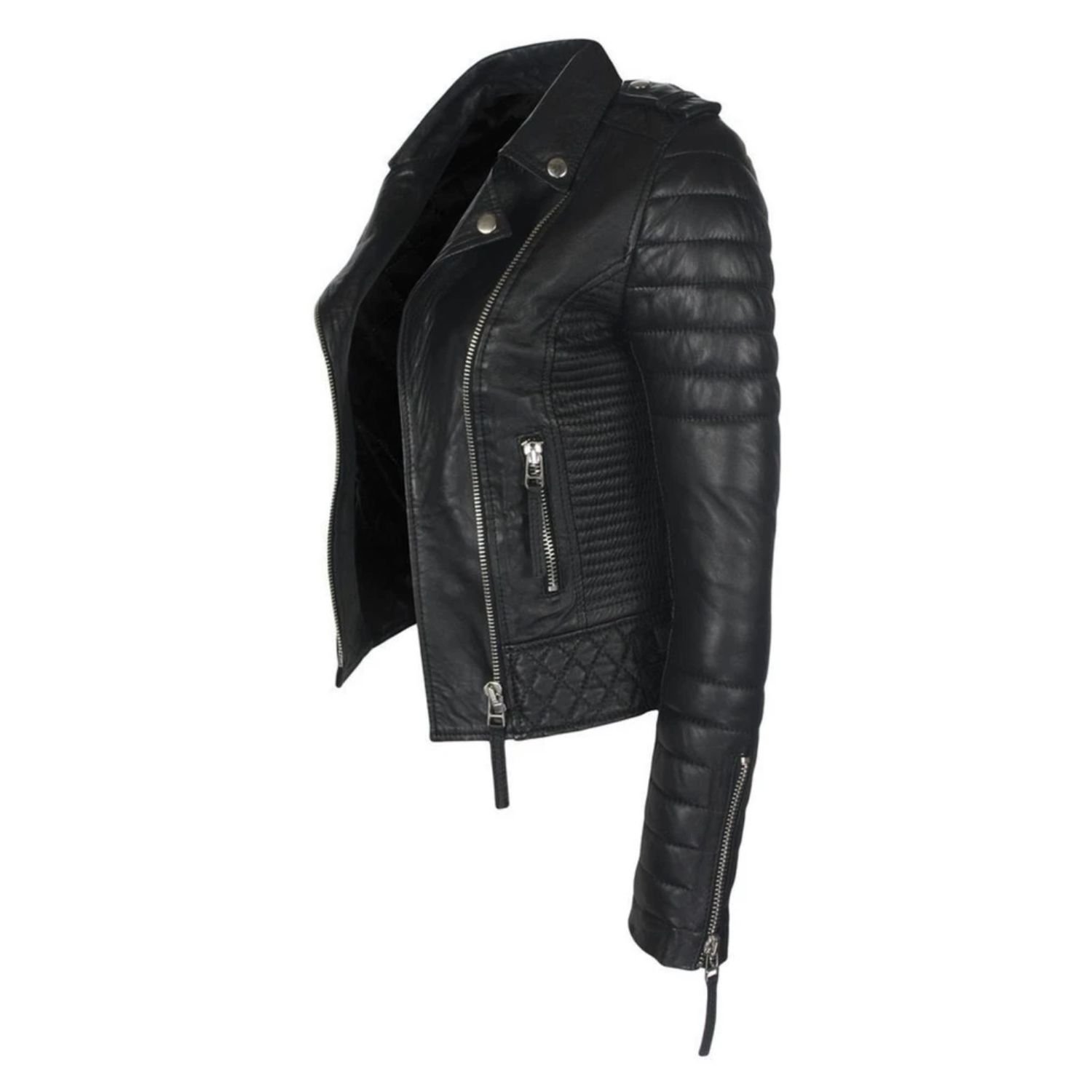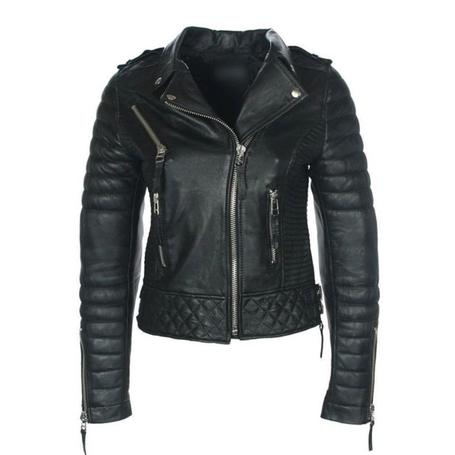 Womens Slim Fit Quilted Black Leather Jacket