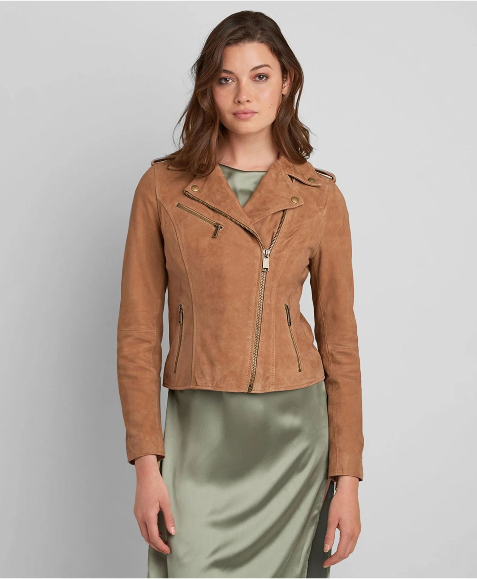 Upgrade your outerwear game with the Women’s Suede Leather Moto Jacket in Brown by Movie Jackets Hub, a timeless blend of luxury, style, and comfort. Made from 100% genuine suede leather, this jacket features a rich brown hue that enhances your outfit with a soft, earthy sophistication. The classic moto design complete with an asymmetrical zipper, notched lapel collar, and silver tone hardware delivers a bold yet feminine look perfect for every occasion. Whether you’re dressing for a casual coffee date, an evening out, or a weekend getaway, this suede biker jacket effortlessly transitions from day to night. Designed for modern women who value both quality and style, the jacket’s tailored fit flatters your silhouette while offering all day comfort. Its buttery soft suede texture and durable stitching ensure long lasting wear, making it a wardrobe investment you’ll cherish for years.