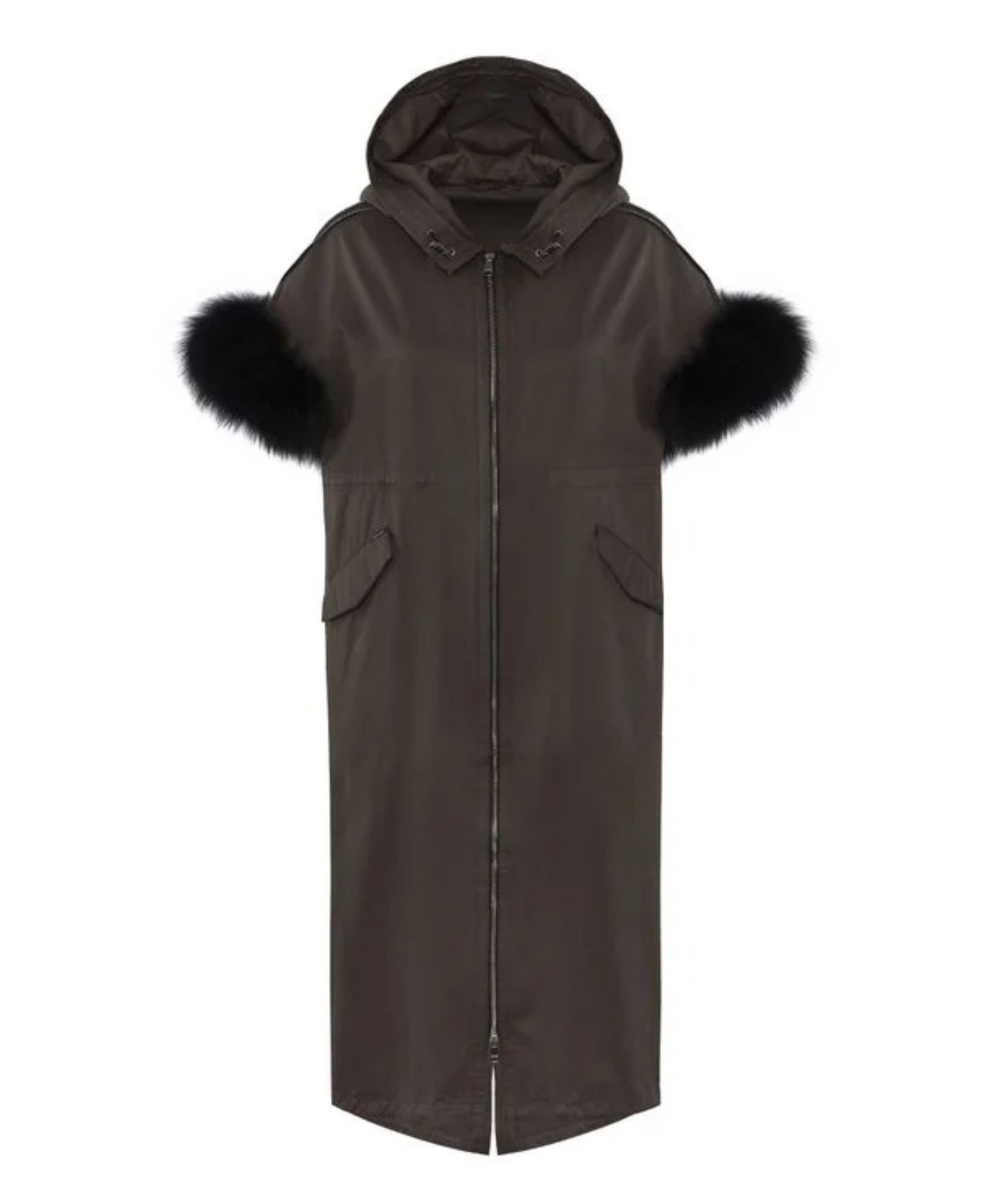 This coat doesn’t just look good it performs. The soft inner lining offers added insulation, while the faux fur exterior acts as a natural barrier against wind and cold. The roomy hood, hidden front closure, and side pockets make it as practical as it is fashionable.