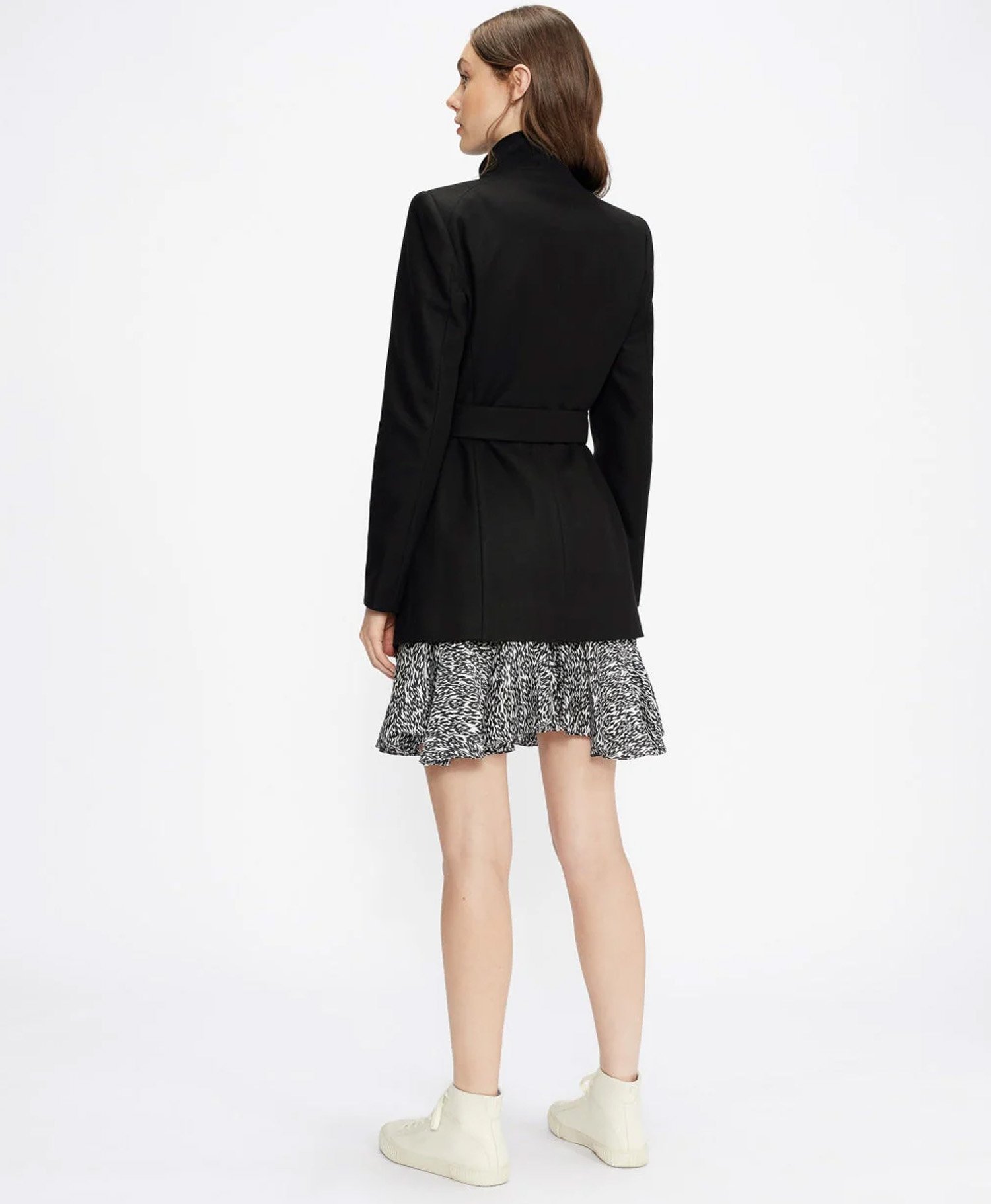 Whether layered over office attire or weekend casuals, this black wool coat adds an instant upgrade to your wardrobe. Dress it up with heeled boots and a scarf or keep it relaxed with jeans and sneakers either way, you’ll step out in style. Its minimal look also makes it a perfect canvas for accessorizing.