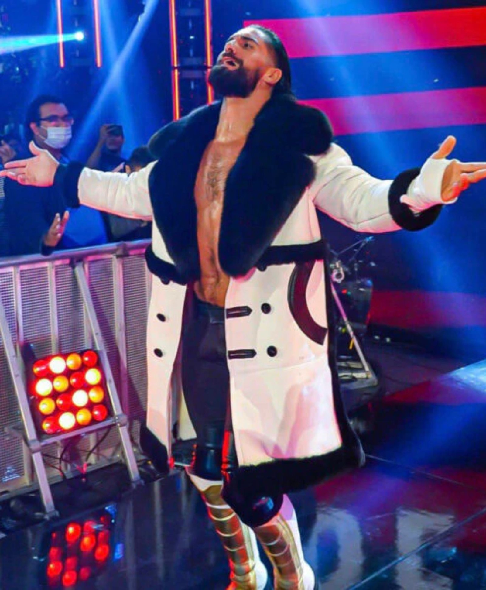 Wrestler Seth Colby Lopez Black Fur Collar White Coat