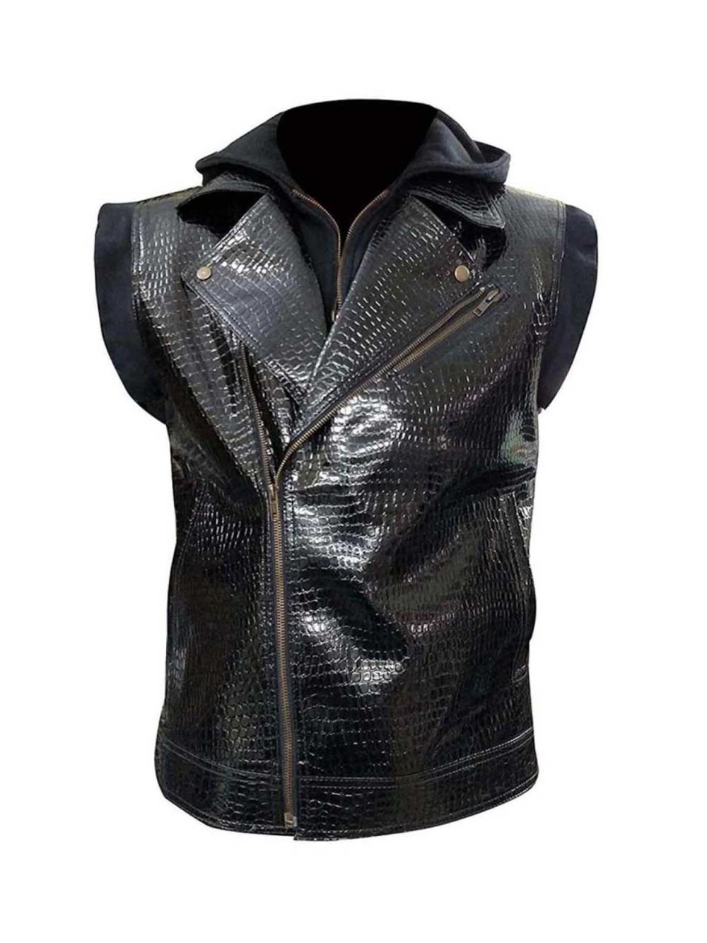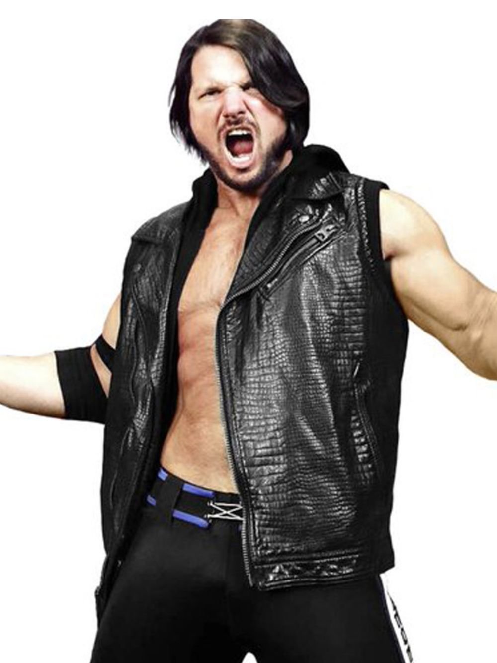 Movie Jackets Hub brings the same featured jacket for you which is made especially made with quality real leather. AJ Styles jacket has viscose lining. This jacket has Collarless Snap tab closure. it has a zip fastening front which is further attached with a hoodie. WWE Superstar AJ Styles Vest contains 6 pockets, two are placed inside whereas four placed outside the jacket.