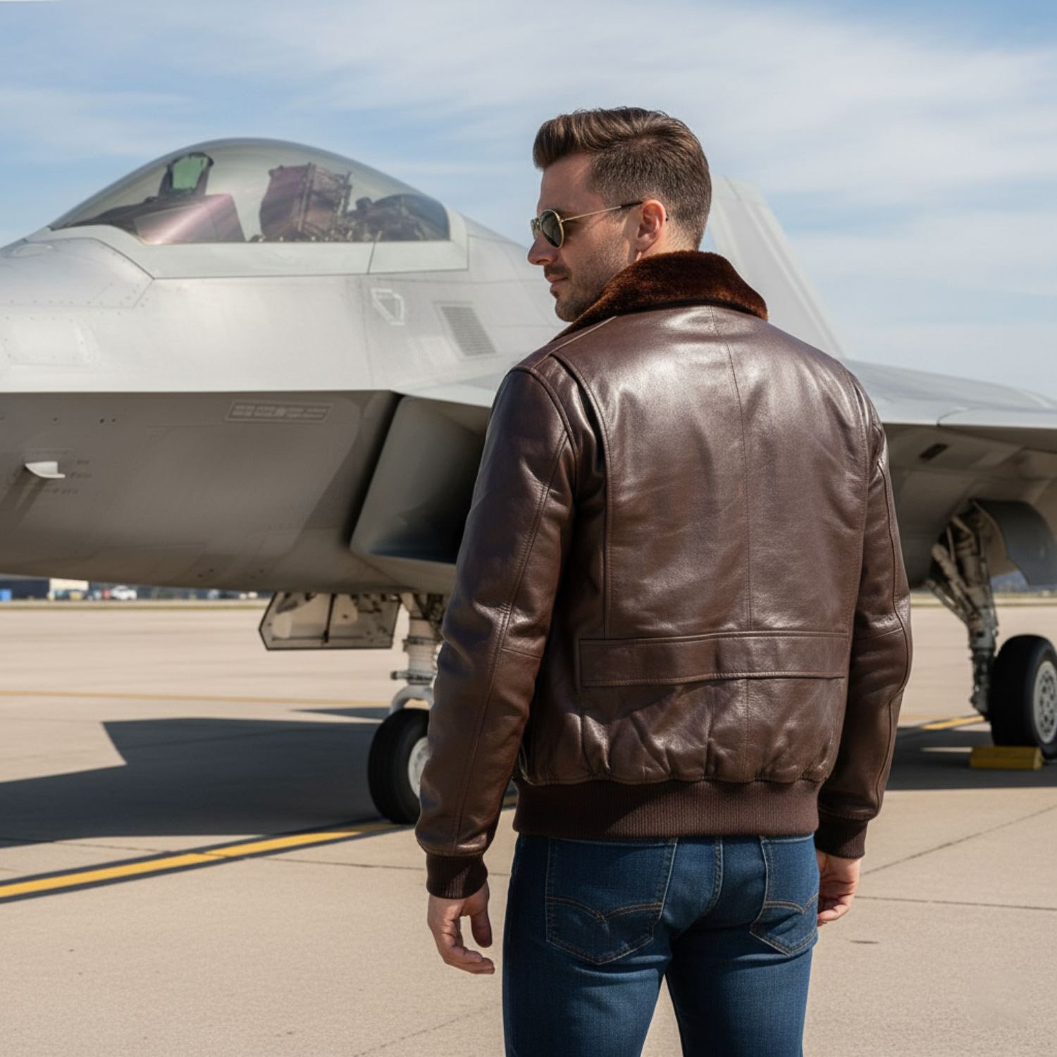 - Design: WWII Navy G-1 flight bomber jacket with authentic military detailing