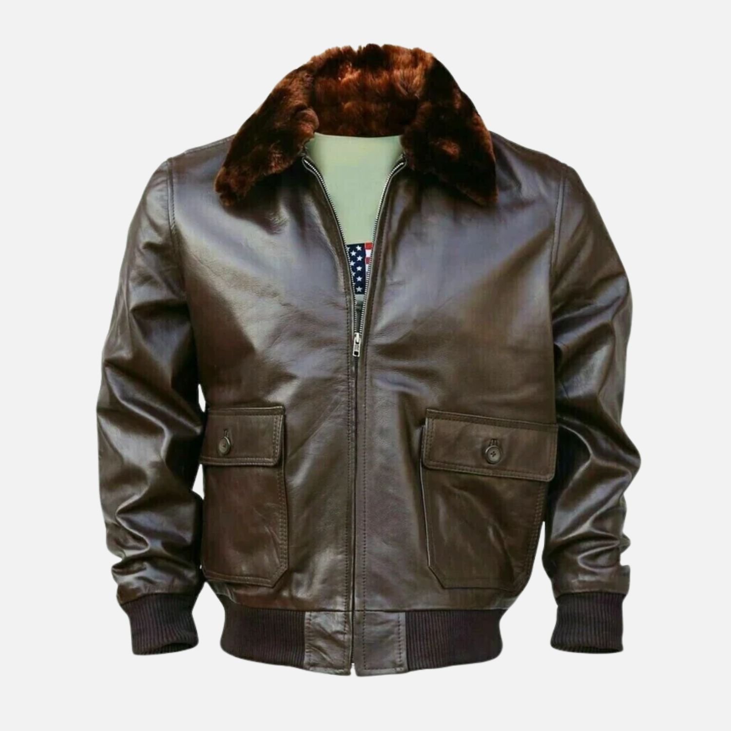 WWII Navy G1 Flight Bomber Genuine Leather jacket With Warm Quilted Lining – Bomber Jacket Faux Fur Collar