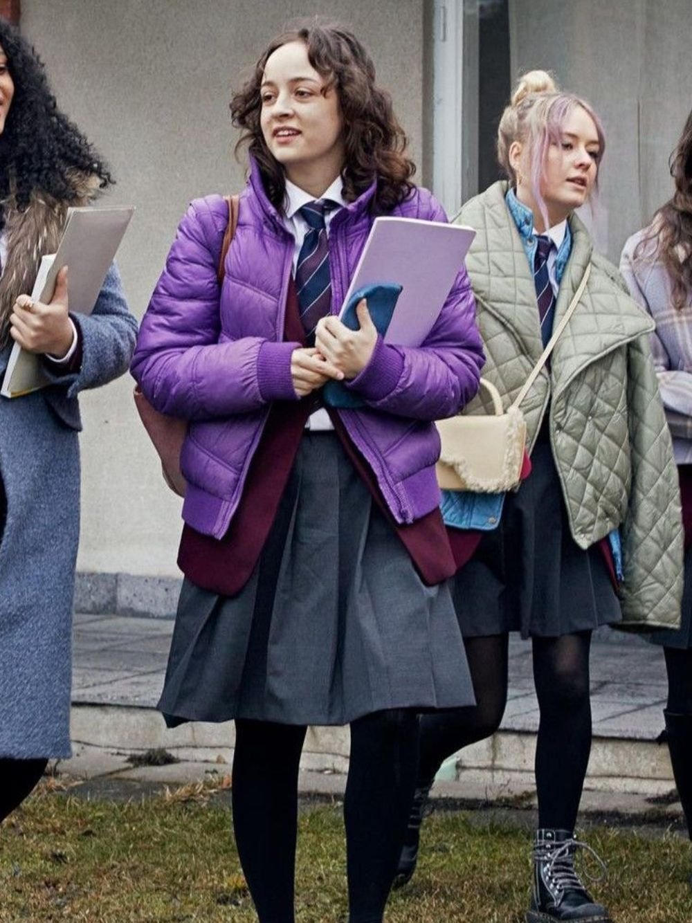 In the captivating world of Young Royals, the students of Hillerska Boarding School navigate a complex web of tradition, romance, and social hierarchy. Frida Argento, who portrays the spirited Sara, brings a raw and authentic energy to the screen, often standing out with her practical yet expressive wardrobe. As a character who often feels like an outsider looking in, her clothing reflects a blend of comfort and a desire to fit into the elite world of the Swedish royals. The Young Royals S02 Frida Argento Purple Puffer Jacket is a standout piece from the second season, capturing the youthful, vibrant essence of the show’s aesthetic and making it a must-have for fans of contemporary European style.