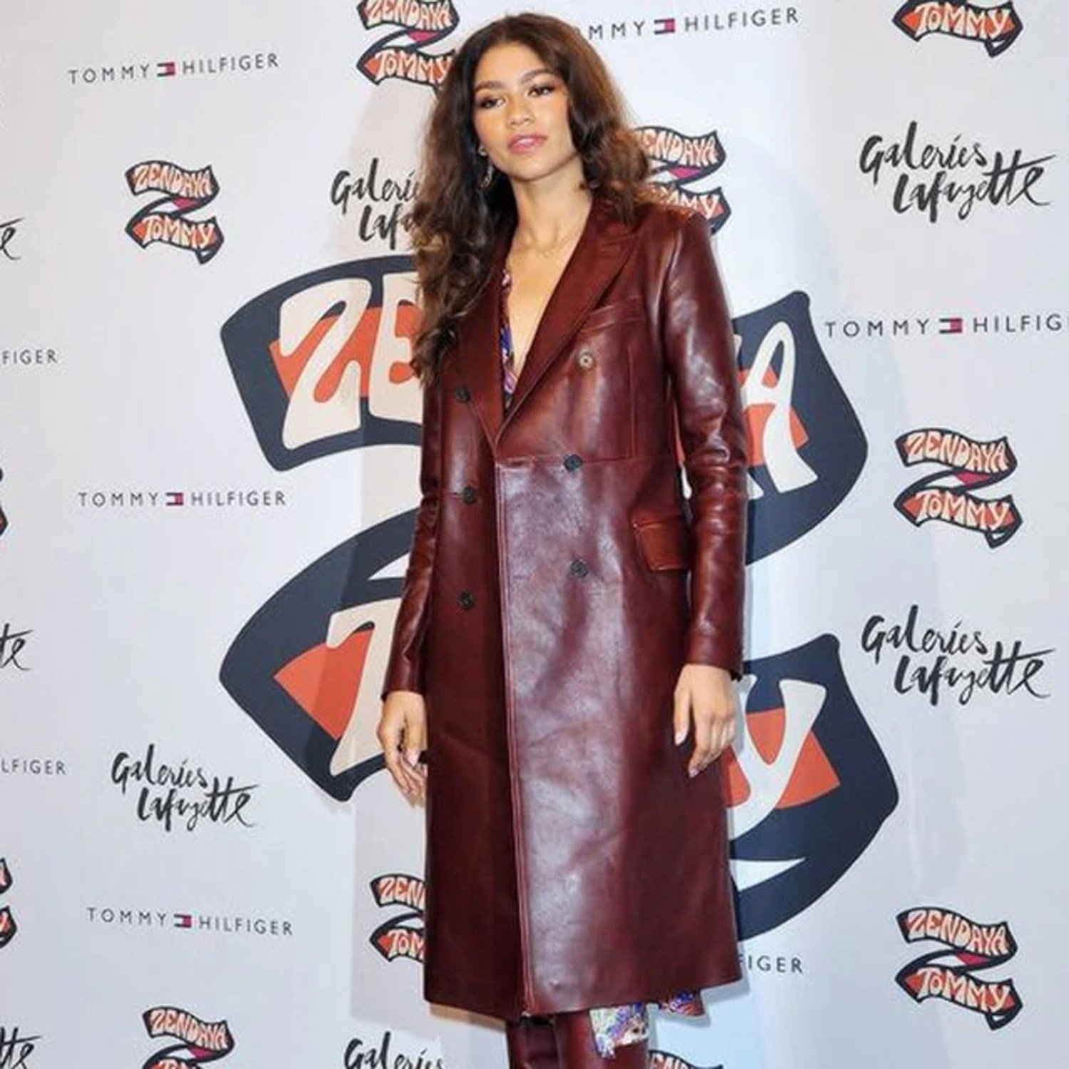 The attractive leather coat was worn by the beautiful and gorgeous celebrity, Zendaya Coleman Leather Trench Coat For Women.by Movie Jackets Hub The versatile and stylish coat hit the runway show of the Tommy Hilfiger Collection held in Paris, France. However, it was a big day for Zendaya because this is her first collection from Tommy Hilfiger. Most importantly, it is titled “Tommy x Zendaya”. The elegant look trench coat is crafted from genuine cowhide leather. In addition, it consists of a notch-lapel collar. The front view is a double-breasted style with one flap pocket style on the waist side. Similarly, full sleeves giving a very smart and fabulous look to Zendaya. Therefore, it is the ideal selection to flaunt your thigh-high sluggard boots, which entirely matched with the leather coat. It’s completely logical 21-year old Zendaya has her finger on the beat of what’s currently going on in fashion.