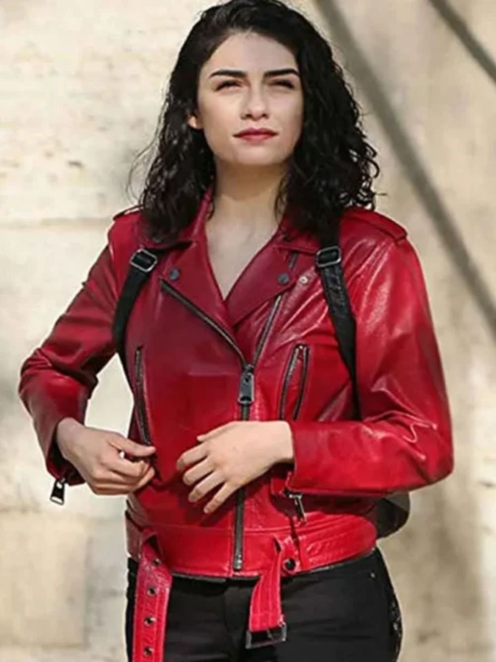 Hazar Ergüçlü The Protector Zeynep Erman Red Biker Leather Jacket